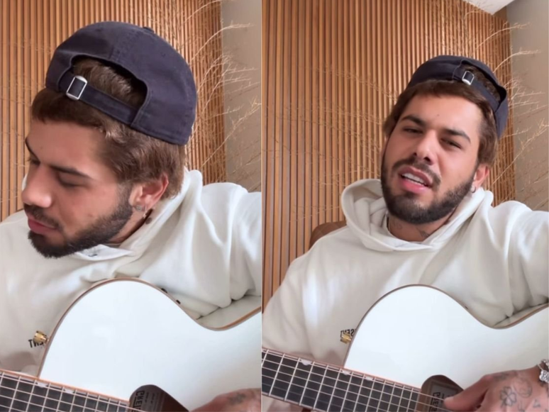 Zé Felipe chamou atenção dos seguidores na quarta-feira (20), ao compartilhar nos Stories do Instagram um vídeo em que aparece tocando violão e interpretando a canção "A Cor da Esperança", da dupla Renan & Ray.
