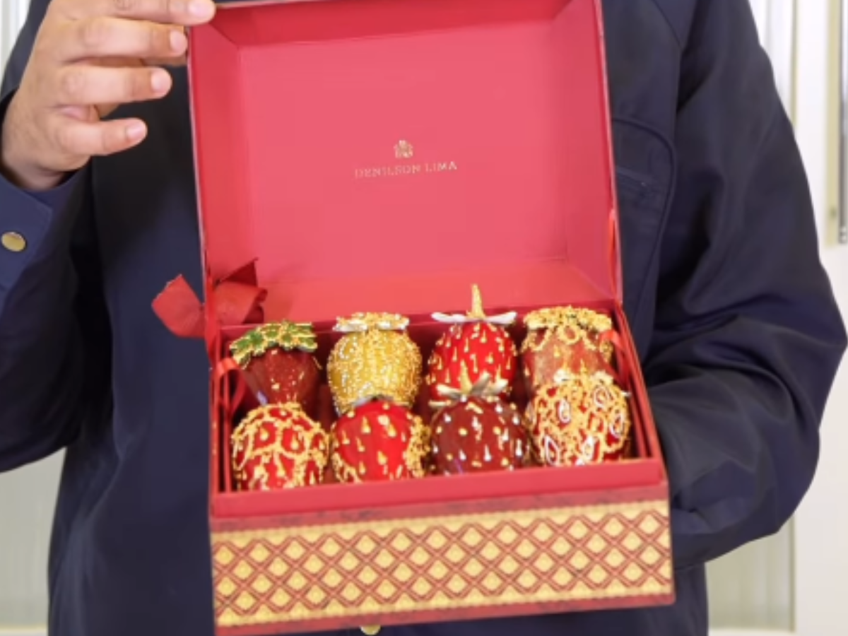 A primeira edição do doce, lançada na terça-feira (19), custava R$ 2.100 e trazia oito unidades, recheadas com brigadeiro belga, leite ninho ou maracujá. Os morangos são cobertos com uma camada de açúcar e decorados com joias de isomalt, inspiradas nos tradicionais ovos Fabergé dos czares russos. Diante da demanda elevada, a versão inicial esgotou rapidamente, dando lugar a uma nova edição, ainda mais refinada, por R$ 2.300.