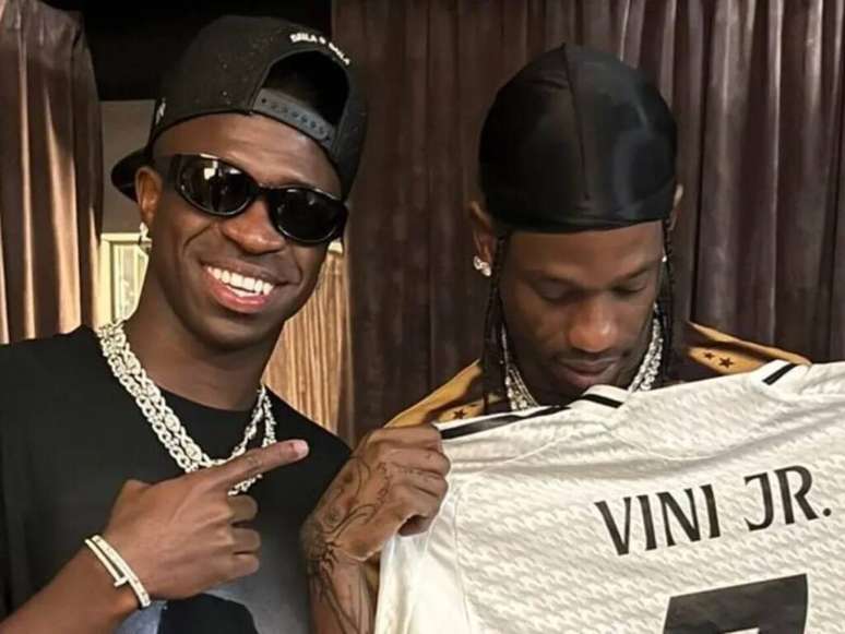 Vini Jr e Travis Scott juntos (Foto: Instagram) Presença ilustre e homenagem