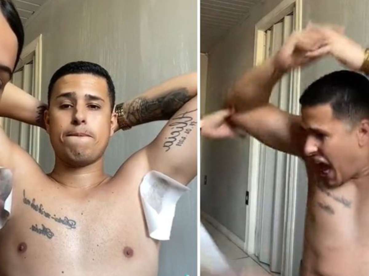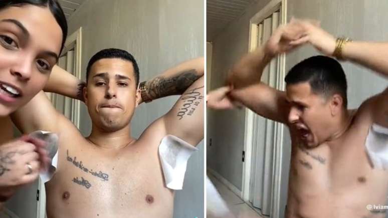 Para tirar a folha depilatória da outra axila, a influenciadora implorou: "Isso é trabalho, mano, isso é sério". Ele aceitou e prometeu não expressar a dor pela segunda vez. Ainda assim, o homem não conseguiu disfarçar o sofrimento. Confira: