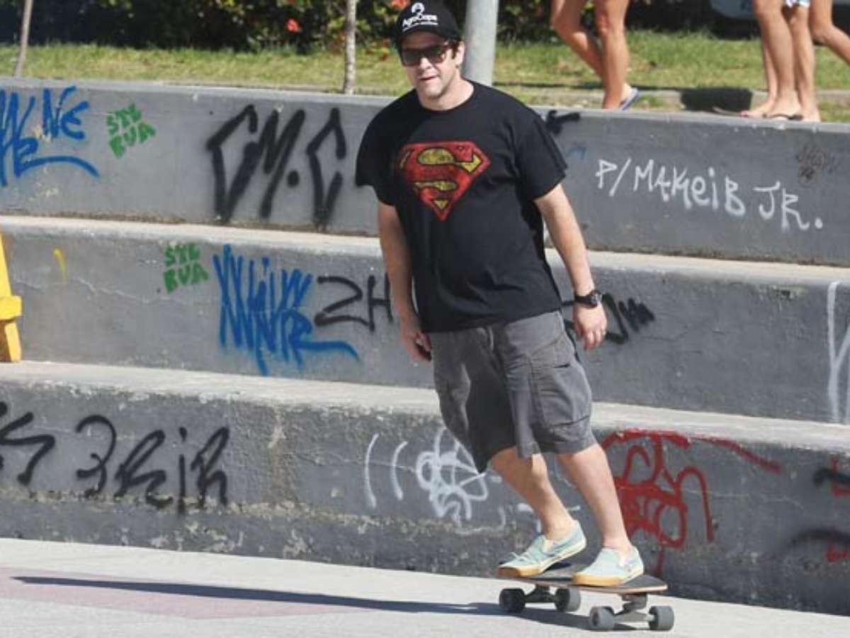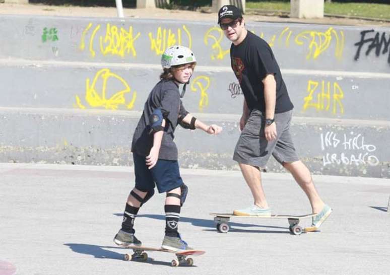Neste domingo (17), o ator Murilo Benício levou o seu filho Pietro, fruto de seu casamento com a atriz Giovanna Antonelli, a uma praça na Barra da Tijuca, no Rio de Janeiro, para andar de skate.