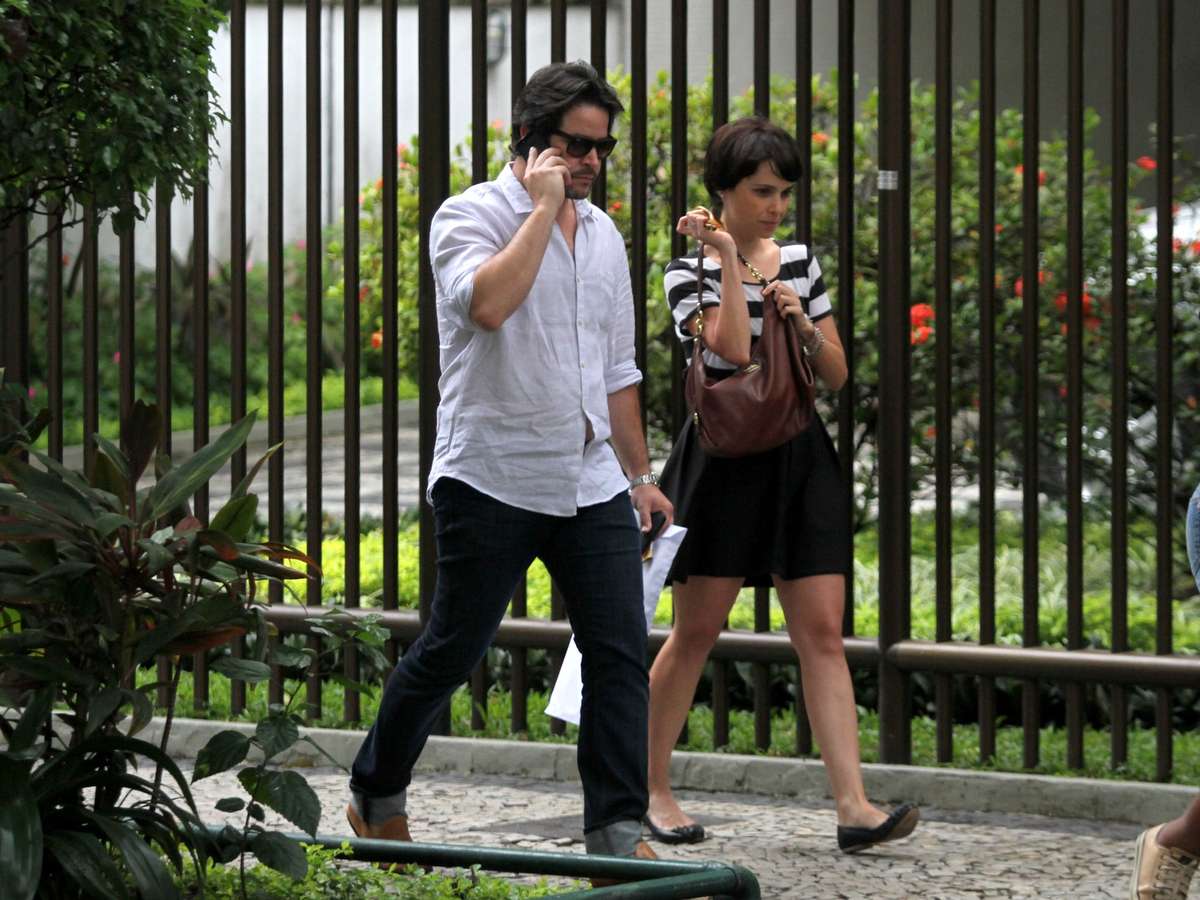 O casal Murilo Benício e Débora Falabella foi visto na tarde desta quarta-feira (9) saindo de um escritório de arquitetura no bairro de Ipanema, na zona sul do Rio de Janeiro. Vestindo uma saia preta e uma blusa listrada, a atriz acompanhou o namorado em silêncio e sem dar as mãos até o carro, enquanto Benício conversava ao telefone. Os atores começaram seu relacionamento durante as gravações da novela 'Avenida Brasil', em 2012. Na trama, Tufão, personagem de Benício, era apaixonado por Nina, vivida por Falabella, mas não teve seu amor correspondido. Na vida real, os dois assumiram o caso assim que a novela acabou e viajaram para Nova York juntos.