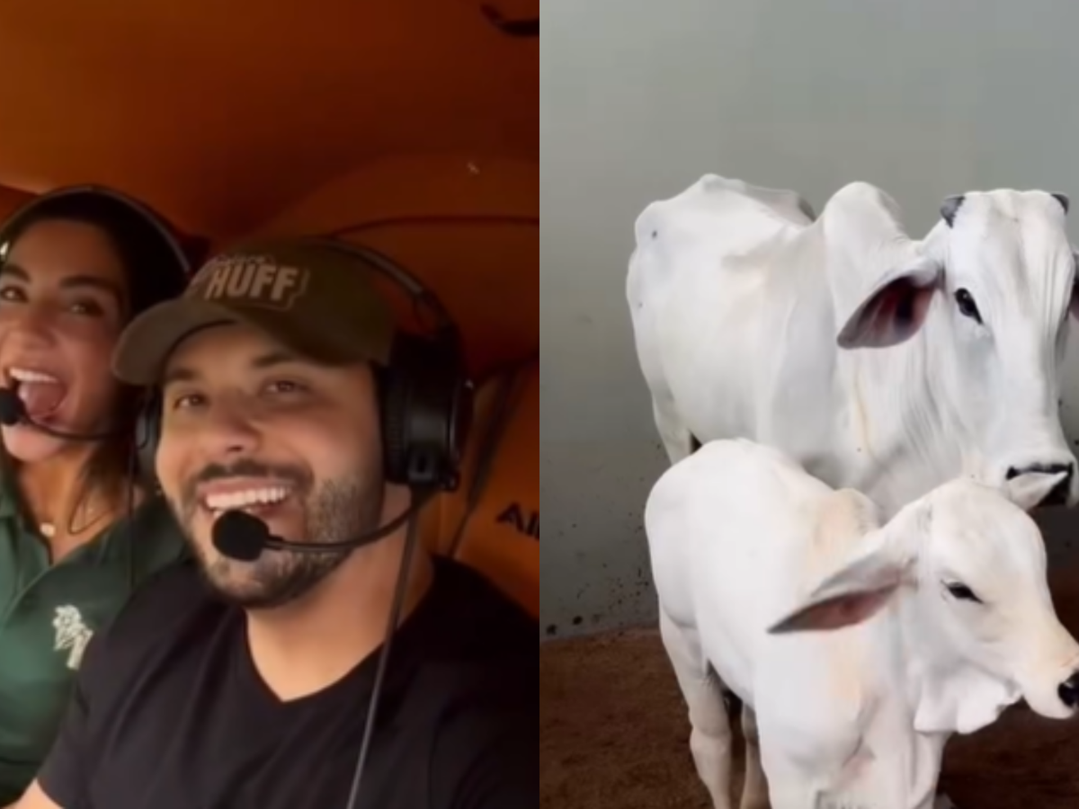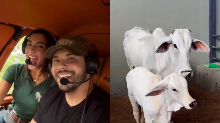 Murilo Huff presenteia Gabriela Versiani com bezerra da linhagem de vaca de R$ 54 milhões