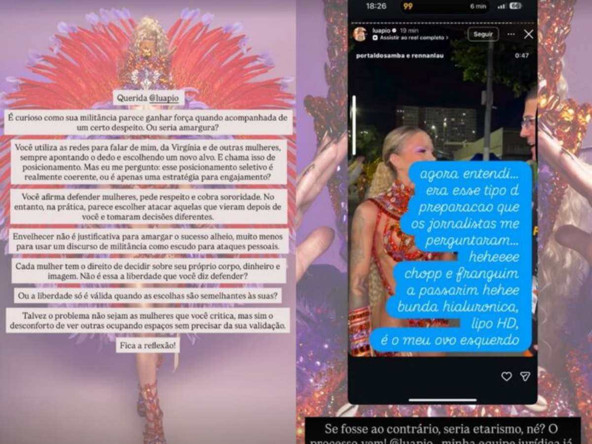 Musa da Estácio de Sá avisa que vai processar Luana Piovani após críticas a procedimentos estéticos