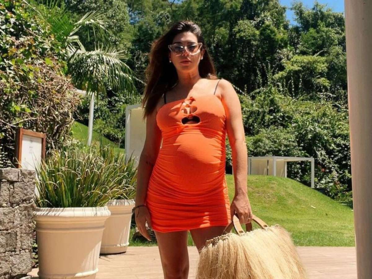 Na reta final da gravidez, Fernanda Paes Leme choca com tamanho do barrigão em look básico: 'Falta pouco'