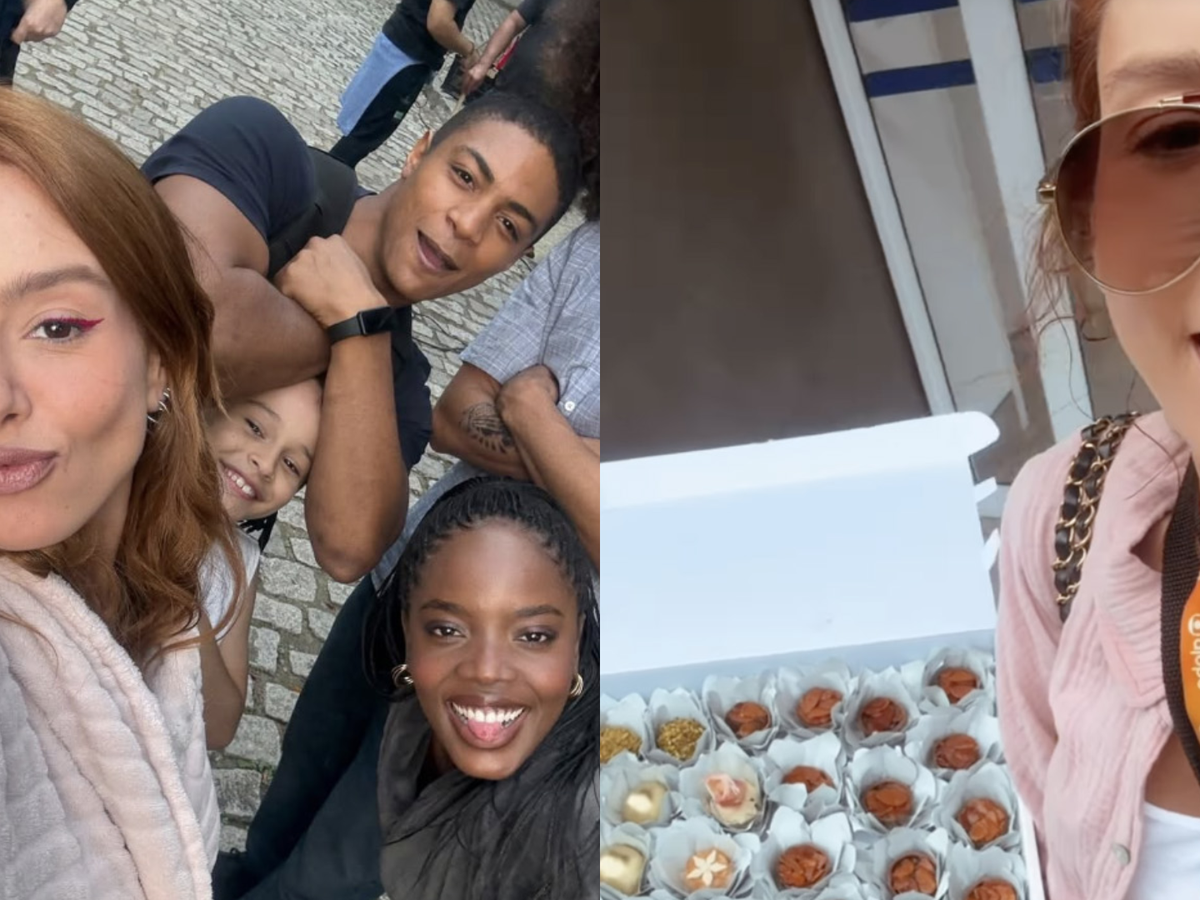 Para adoçar o retorno, Giovanna não esqueceu dos colegas de elenco: levou docinhos da festa de casamento para todo mundo no set. Brincando, disse que precisava parar de comer tanto doce, mas que estava difícil resistir.