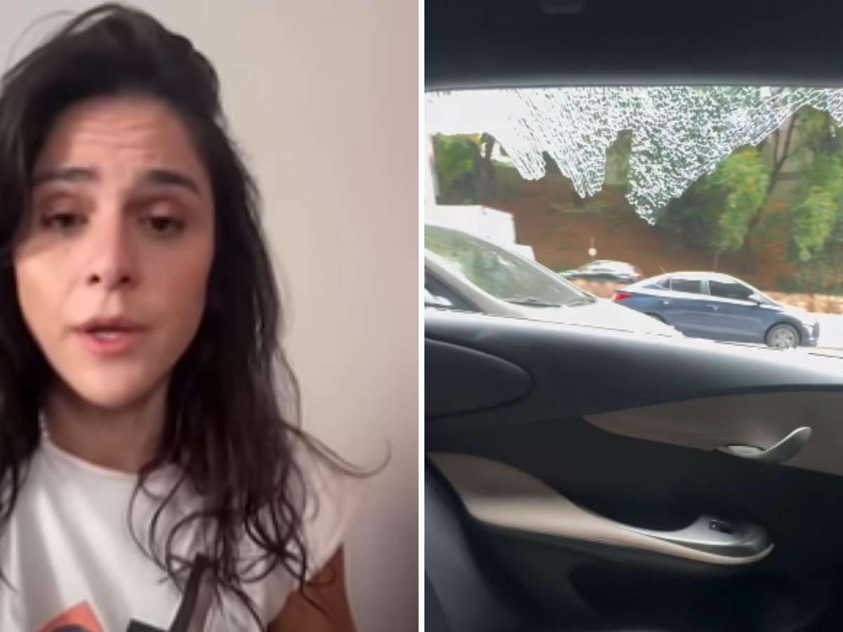 "[Estou] chateadíssima, é uma tristeza, é um susto. O Uber que estava dirigindo o carro é um trabalhador, estava trabalhando e aí você vai entrar na 23 [de Maio], que é uma via bastante importante em São Paulo, vem um moleque, de moletom com capuz preto, todo coberto, estoura o vidro na tua cara", lamentou. "Machuquei meu braço, tem sangue no meu casaco, não sei nem se é meu ou do menino".