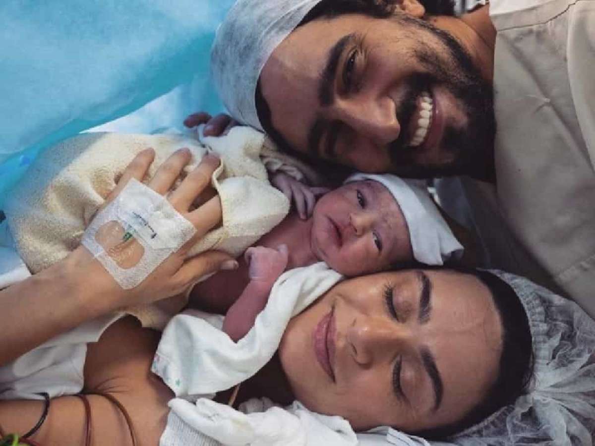 "Família completa, meu milagre nasceu!", publicou a artista logo após o parto. "Você é o nosso grande milagre, mamãe. Obrigado por tantos", respondeu o maridão.