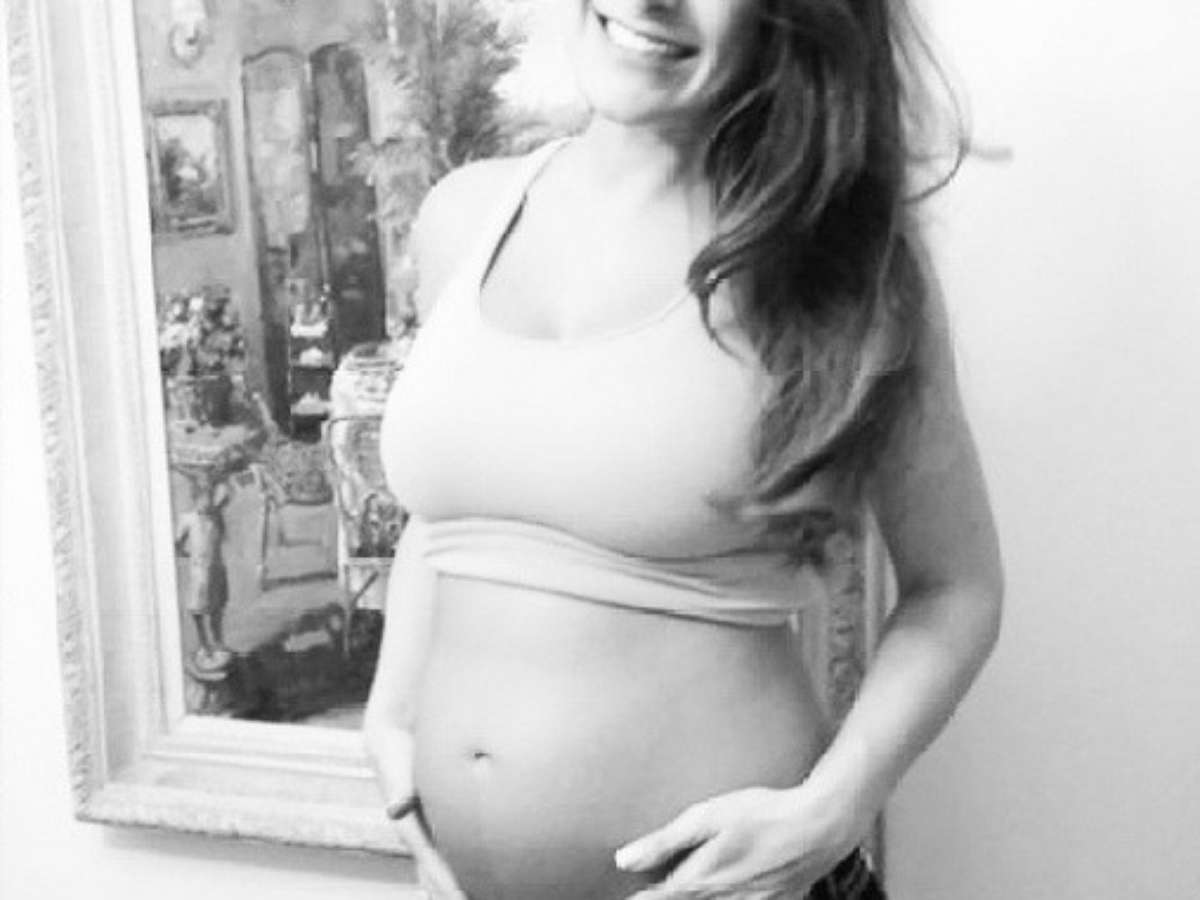 Perto de completar seis meses de gestação, a Miss Brasil 2007, Natália Guimarães, posou nesta terça-feira (7) para o namorado Leandro, do grupo KLB, exibindo o barrigão de grávida. Natália está no quinto mês de gestação, e espera duas meninas.