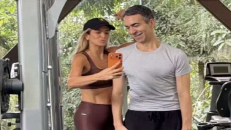Sempre ativa nas redes sociais, Ticiane apareceu em uma selfie exibindo o bíceps, com aparelhos de musculação ao fundo, provando que o compromisso com a saúde segue firme até nas férias. Em outro clique, a apresentadora surgiu ao lado de César Tralli em frente ao espelho. O jornalista, que atualmente comanda o "Jornal Nacional", chamou atenção ao posar segurando uma anilha de 20 kg, arrancando elogios dos fãs do casal.