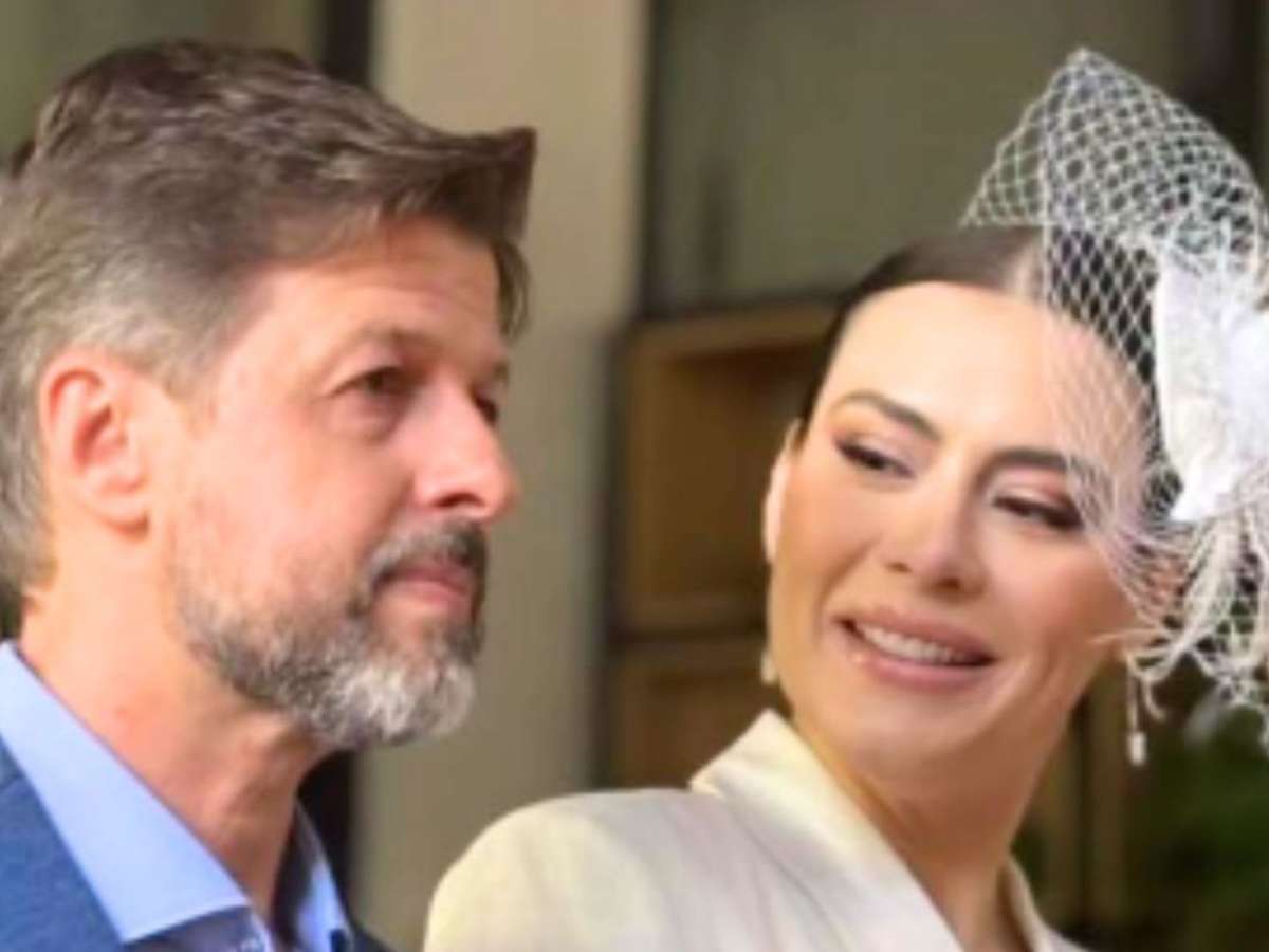 Nem vestido, nem véu: Michelle Loreto aposta em alfaiataria para casamento com diretor da Globo