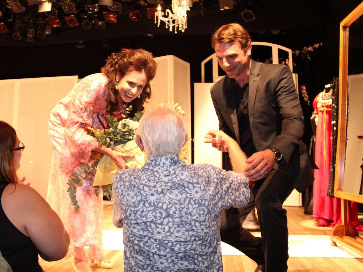 Ney Latorraca homenageou nessa quinta-feira (9) Silvia Pfeifer e Cássio Reis, no Teatro Leblon, no Rio. Os atores estrelam a peça Callas, dirigida por Marília Pêra