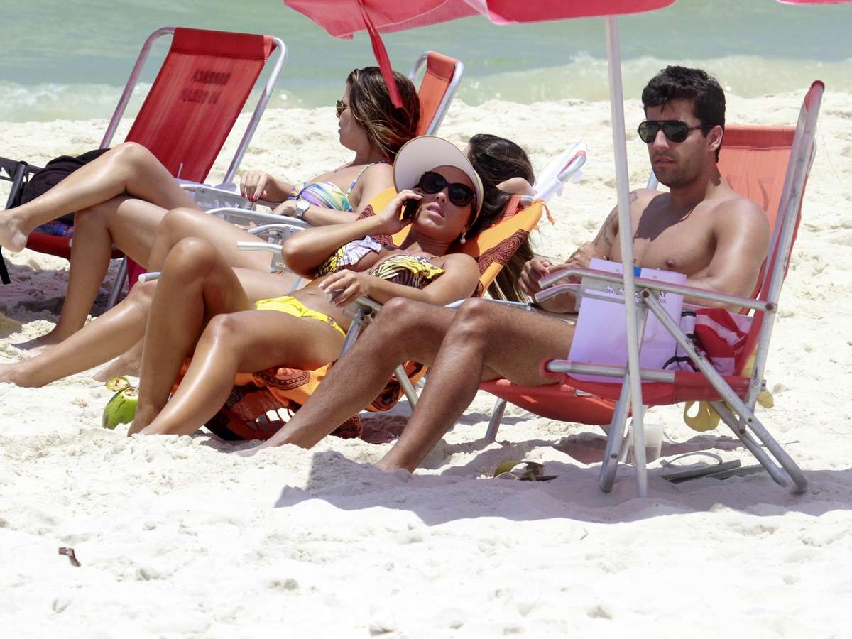 Nicole Bahls aproveitou o sol desta quarta-feira (23) para curtir a praia da Barra da Tijuca no Rio de Janeiro. De biquíni Nicole, a modelo exibiu boa forma.A modelo estava com o amigo Diego Pompo. Os dois participaram do programa A Fazenda, da Record.