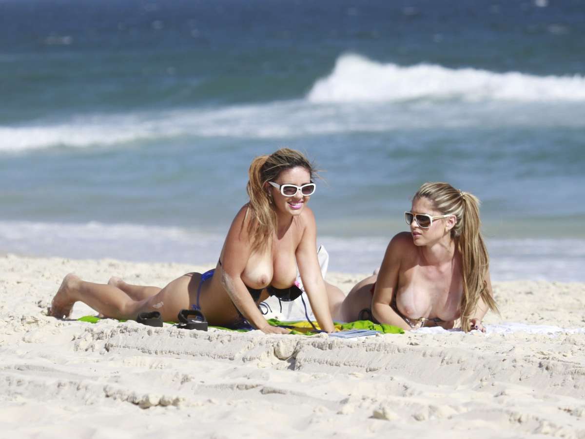Pouco antes já havia ocorrido um primeiro "flagra". As duas se deitam para um bronze. Como muitas mulheres fazem, retiram a parte de cima do biquíni e ficam de bruços para, assim, não deixarem as costas marcadas. Mas, ao se levantarem, simplesmente "esquecem" de colocar os seios para dentro, o que só fazem já em pé, calmamente, como se estivessem em suas próprias casas.