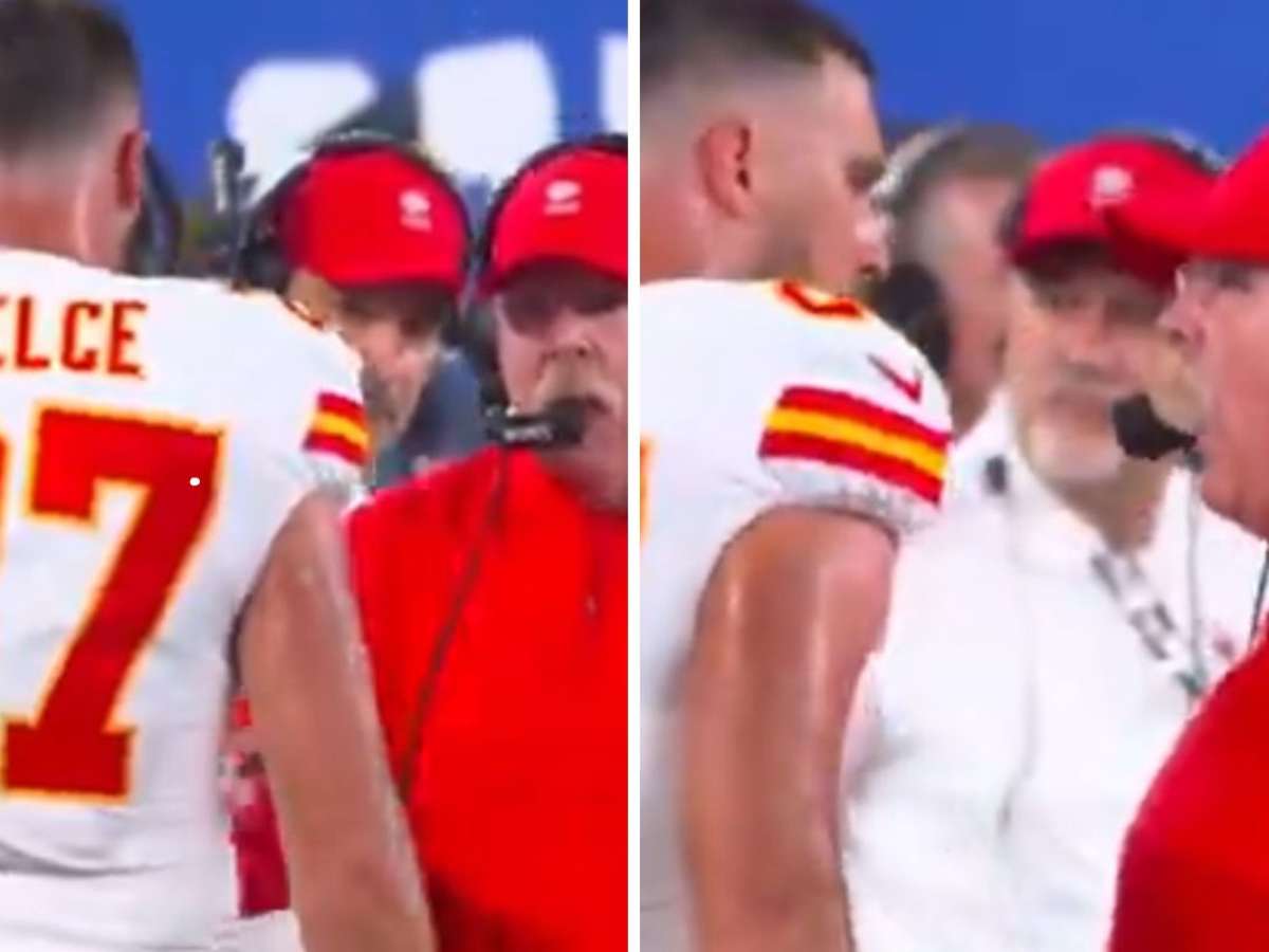 Em vídeo que circula pelas redes sociais, é possível ver o noivo de Taylor Swift tomando uma bronca do treinador e respondendo à altura. Não foi possível ouvir ou decifrar o que um disse ao outro, apenas perceber que ambos estavam exaltados.