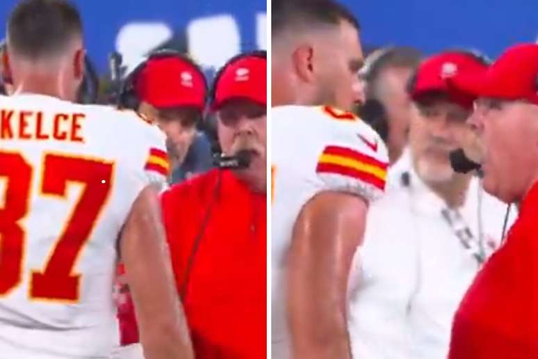 Travis Kelce, jogador do Kansas City Chiefs, protagonizou um momento de tensão com o técnico Andy Reid, de 67 anos, no último domingo, 21, durante um jogo contra o New York Giants pela NFL, no MetLife Stadium.
