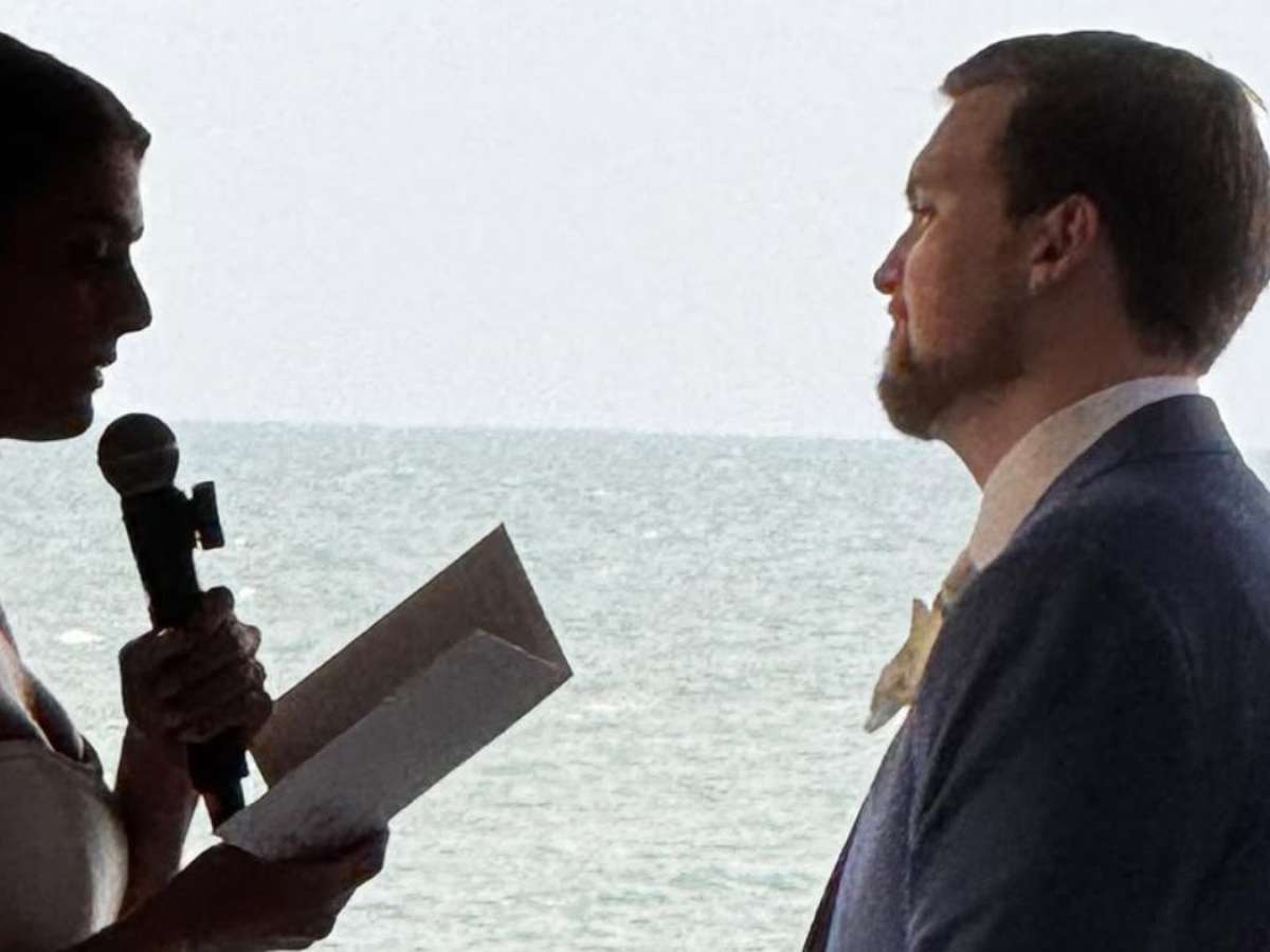 Noivo inglês de Luma César, filha de César Filho, erra o português e faz voto de casamento inusitado