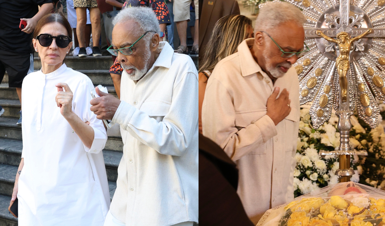 O comovente adeus de Gilberto Gil a Nana Caymmi em 20 fotos: cantor vai ao velório da ex-mulher e emociona com beijo na testa em despedida