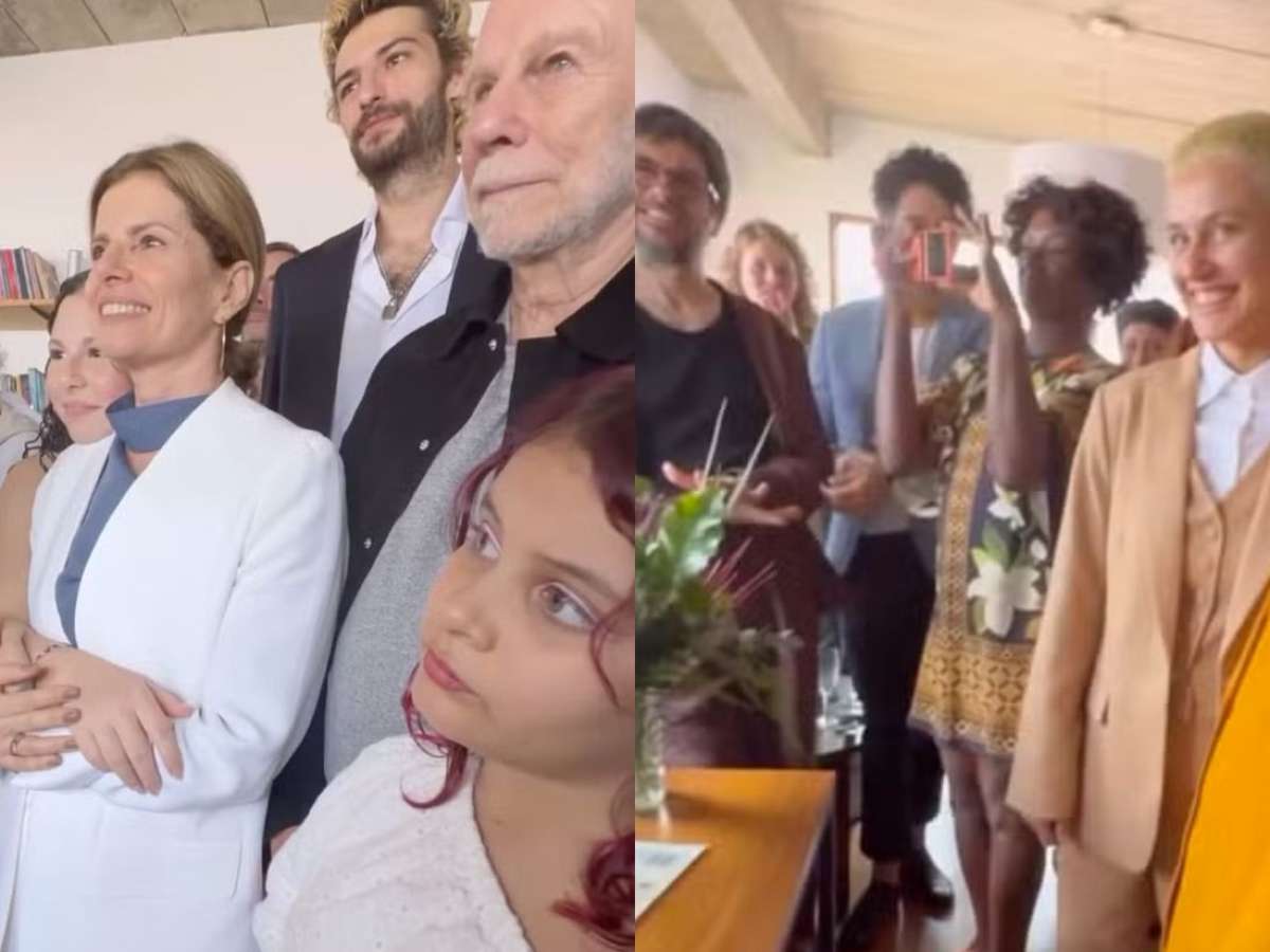Já sua esposa, Maria Beraldo, apostou no bege para formar um conjunto de calça e colete, combinado com uma camisa branca. Pai de Júlia, Olivier Anquier compartilhou detalhes da cerimônia em suas redes sociais e fez uma declaração de amor emocionante para as noivas: