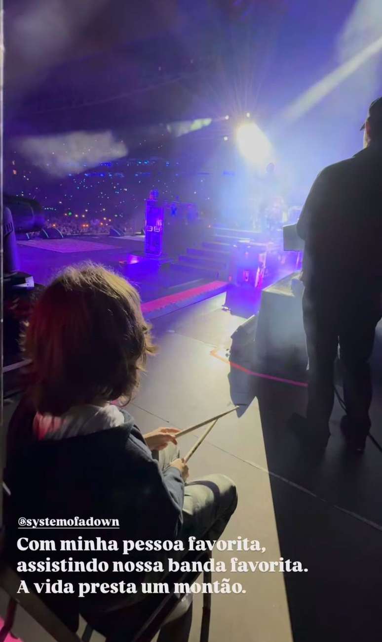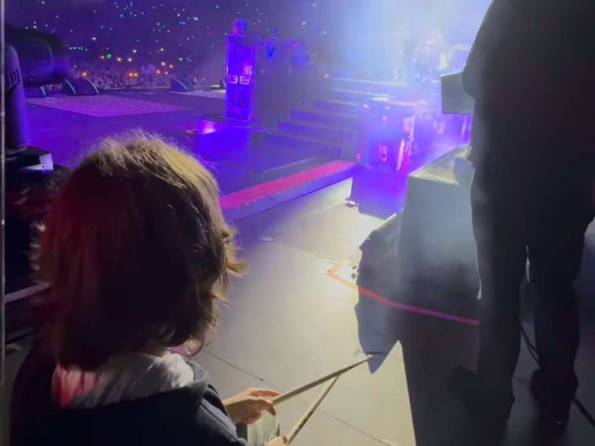 O famoso chamou o garoto de "sua pessoa favorita" nas redes sociais. O músico compartilhou imagens do menino assistindo à apresentação com baquetas na mão, em um local privilegiado no palco.