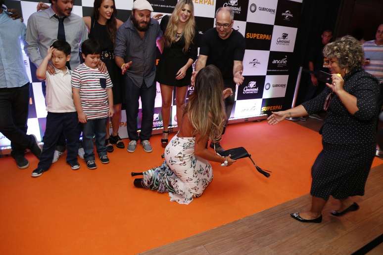 Bem-humorados, as outras estrelas do filme fizeram piada e se deitaram no chão ao lado da modelo. Integram o elenco Dani Calabresa, Antonio Tabet, Thogun Teixeira, Monica Iozzi, Juliana Didone, entre outros.