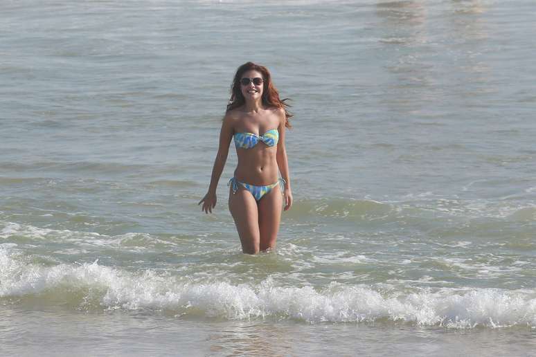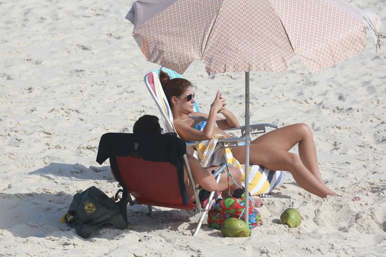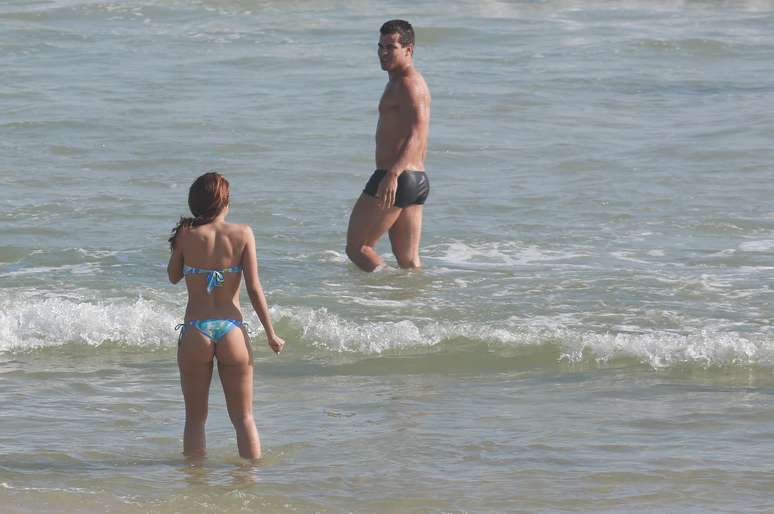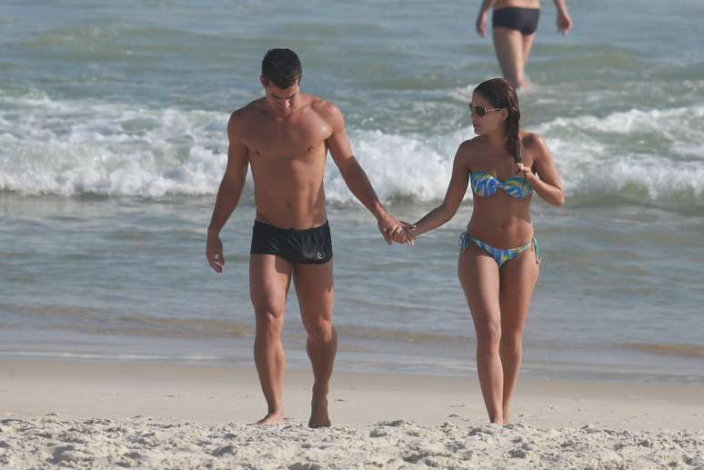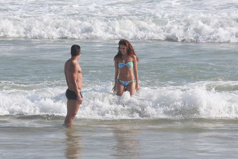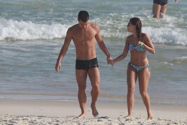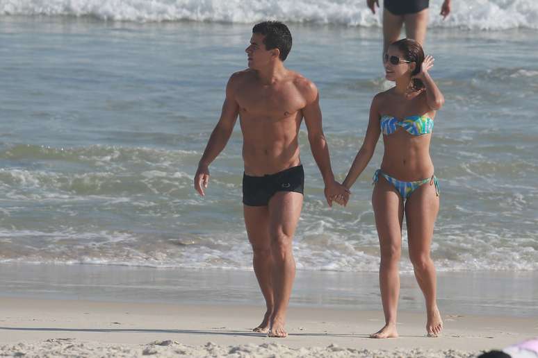 Paloma Bernardi e Thiago Martins aproveitaram o sol dessa quinta-feira (18) para curtir a praia na Barra da Tijuca, Rio de Janeiro. A atriz, que foi vice-campeã da Dança dos Famosos do Domingão do Faustão, exibiu boa forma com um biquíni tomara que caia estampado e trocou carinhos com o namorado, com quem está junto há quase três anos.