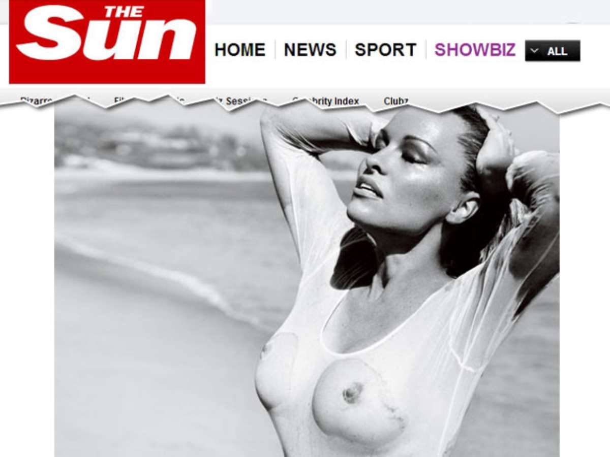 Pamela Anderson posa para revista com os seios à mostra