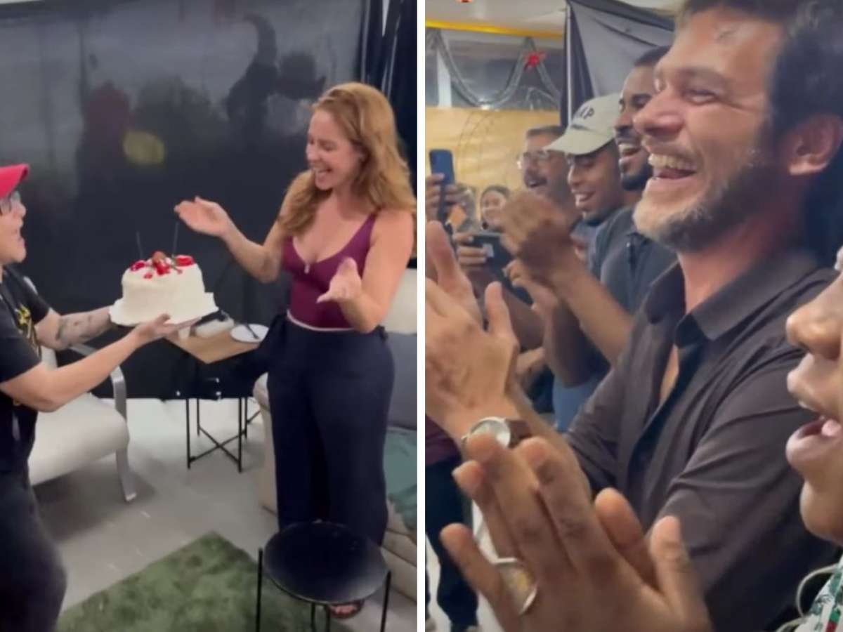 “Começaram as comemorações”, escreveu ela ao compartilhar o vídeo em que é surpreendida com um bolo.