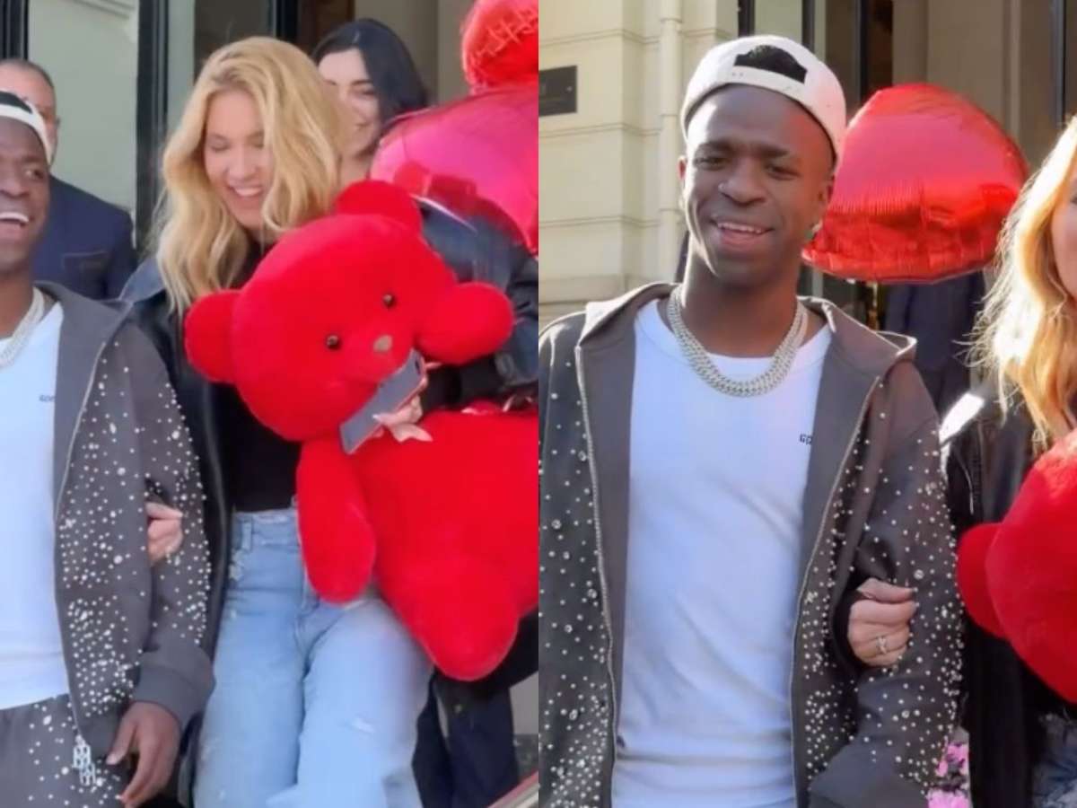 Envergonhado e discreto, Vini Jr. disparou aos amigos enquanto deixava o prédio: "Para de gritar". No vídeo, filmado pela influenciadora Lídia Souza, amiga de Virgínia, é possível ouvir um dos amigos reclamando da 'censura' do craque: "Para de gritar o c*r*lh*". Apesar do pedido, tudo correu na maior paz e brincadeira entre ambos.
