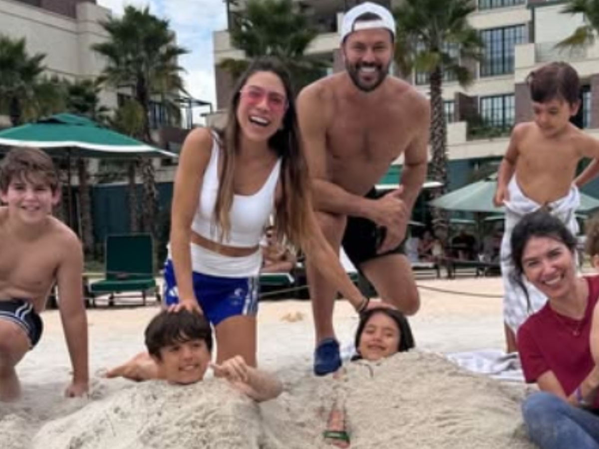 Nas redes sociais, Patricia compartilhou cliques do momento em que os filhos foram enterrados na areia. Rebeca Abravanel, irmã de Patricia, também apareceu nas fotos, acompanhada do pequeno Benjamin, seu filho de um ano. Além de Benjamin, o caçula Senor apareceu de toalha nas pernas, curtindo o clima de praia.