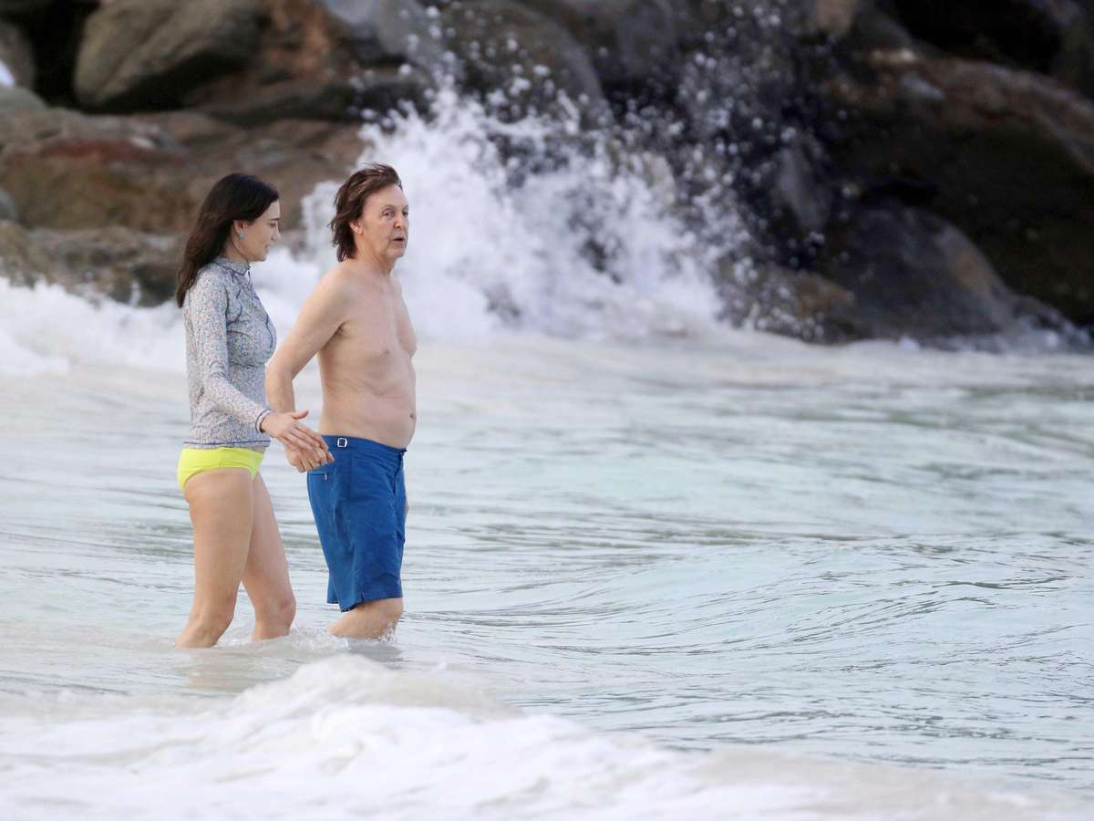 Paul McCartney curte praia com esposa em ilha no Caribe
