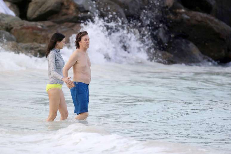 Paul McCartney aproveitou o fim de ano para relaxar ao lado da esposa, Nancy Shevell. O casal foi clicado curtindo a praia em St. Barts, no Caribe, na última segunda-feira (28).