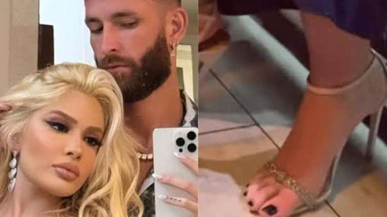Priscilla Souza, amiga da loira, compartilhou um vídeo nos stories do Instagram mostrando o pé de Karoline, que estava para fora do salto que usava.