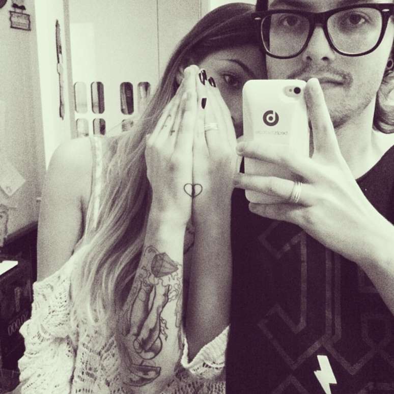 "Pra brindar o infinito de nós dois", escreveu ele. Já em sua conta, Gabi mostrou o baixista sendo tatuado no estúdio.