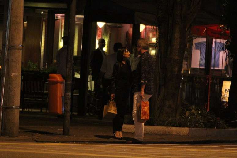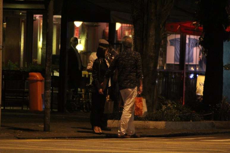 Com sacolas na mão, os dois conversaram e trocaram beijos na calçada do bairro carioca.
