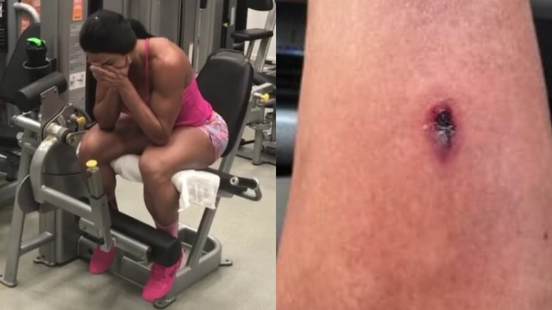A influenciadora Gracyanne Barbosa contou aos seguidores que se machucou enquanto treinava musculação em sua academia. O acidente aconteceu quando ela usava um aparelho de perna sem trava de segurança. O pé escorregou e a canela bateu com força, deixando um hematoma e causando muita dor. Além de arrancar um pedaço da pele, a região ficou bastante sensível.