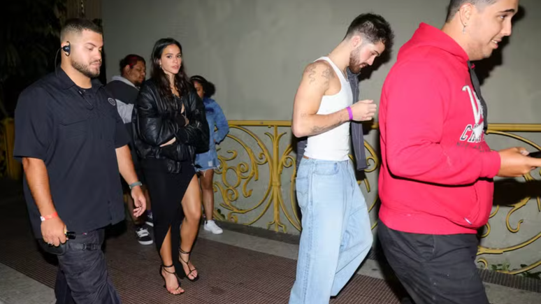 Aprontou? Bruna Marquezine arrebenta sandália e sai de festa ao lado de João Guilherme