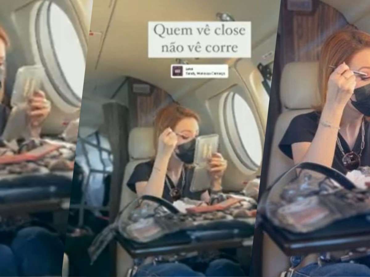 No último final de semana, a cantora Sandy compartilhou uma foto mostrando os bastidores de uma viagem para a realização de um show. No registro, Sandy - que há pouco tempo surgiu "sem maquiagem" na web - aparecia se maquiando em um jatinho e colocou a legenda "quem vê close, não vê corre".