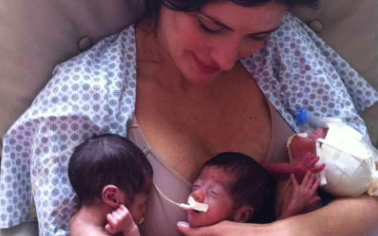 Isabella explicou que os trigêmeos, nascidos em 2011, chegaram ao mundo com apenas 27 semanas de gravidez e tiveram que permanecer 90 dias na UTI: "O dia em que saí do hospital e tive que deixar os três na UTI dentro das incubadoras foi um dos dias mais vazios da minha vida! Eu não tinha mais a companhia deles na minha barriga (fiquei em repouso absoluto por 4 meses), nem nos bercinhos que eu tinha preparado para eles! Mas o dia que cheguei em casa com eles nos braços… Foi o dia mais cheio de alegria da minha vida".