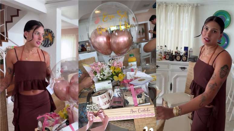No vídeo publicado por Vetuche, é possível ver a cesta decorada com balões comemorativos contendo o nome de Ana Castela, além de um cartão que chamou atenção pelo tom enigmático. Durante a gravação, o influenciador questiona a cantora se ela teria ideia de quem enviou o presente. A resposta da boiadeira não passou despercebida: "Gente, eu só penso em uma pessoa só na minha vida".