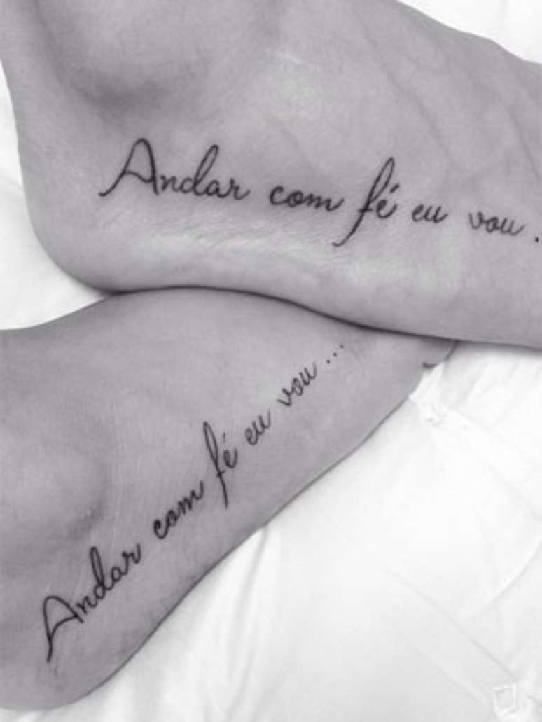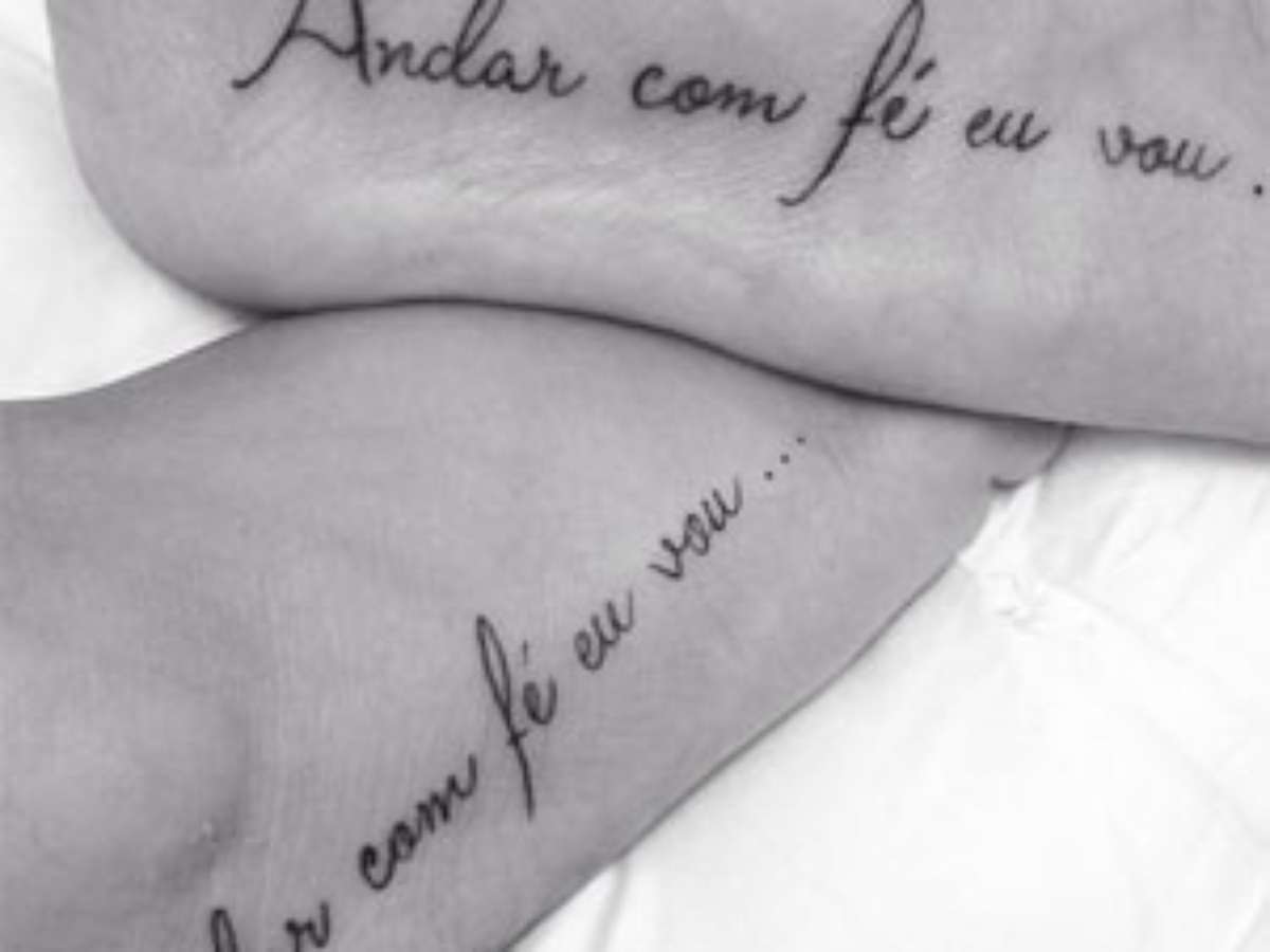 "Andamos juntos lado a lado com muita fé e amor, Rodrigo", ela escreveu ao lado da imagem dos pés recém-tatuados.