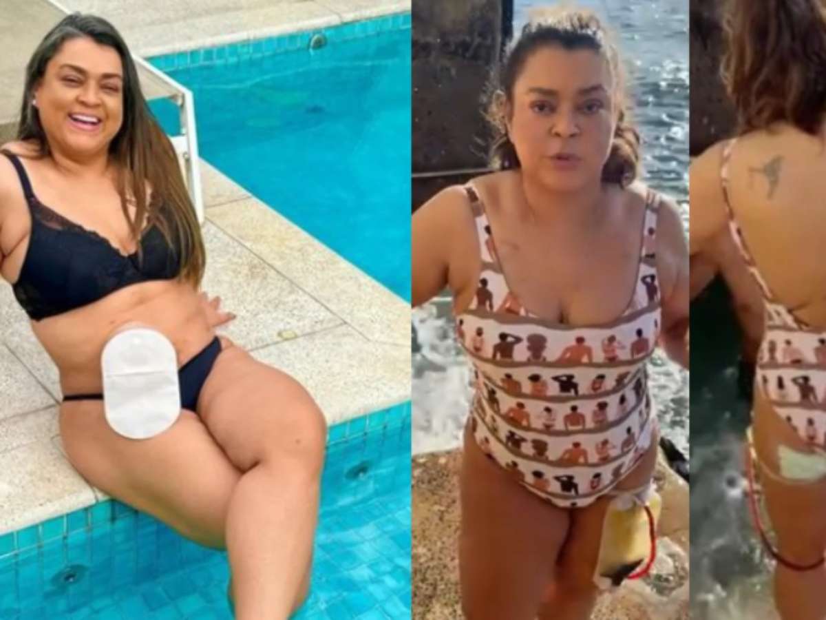 Dias depois, na última visita a Salvador, a artista realizou o desejo de dar um mergulho — com a bolsa de colostomia sob o maiô e outra, de um dreno, pendurada na lateral do corpo.