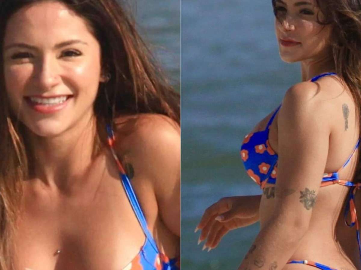 Ex-Fazenda Nathalia Valente esbanja beleza em praia do Rio de Janeiro e impressiona fãs