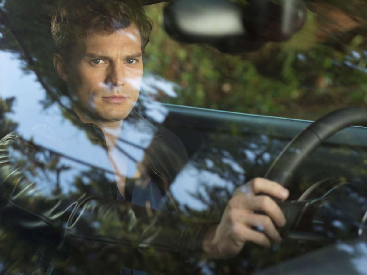 A Universal Pictures divulgou, nesta quarta-feira (18), a primeira imagem da adaptação para os cinemas do livro Cinquenta Tons de Cinza. Na foto, feita durante as filmagens, Jamie Dornan, que interpreta o protagonista Christian Grey, aparece vestindo uma jaqueta de couro e com expressão séria dentro de um carro.