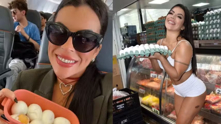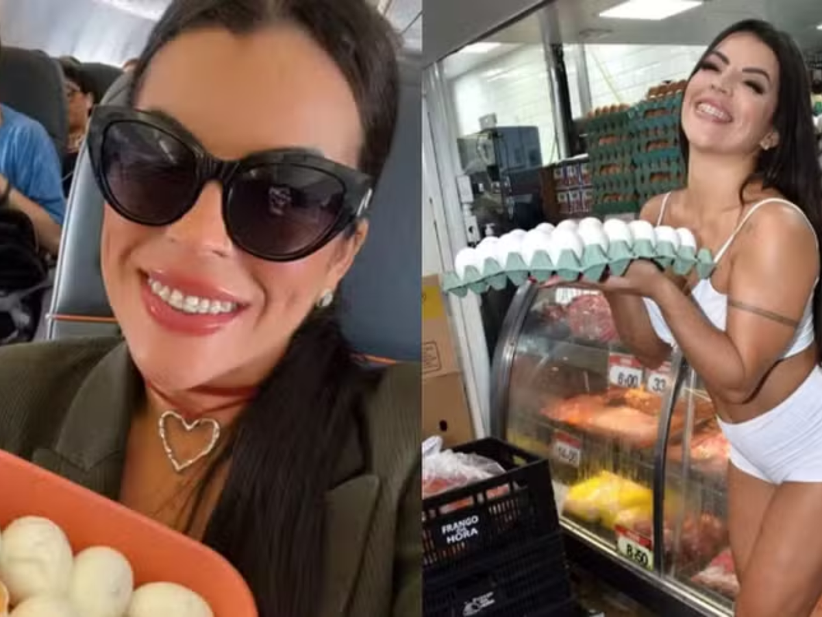 Primeira Miss Bumbum revela que passageiro se incomodou com marmita fit durante voo: 'Nojo'