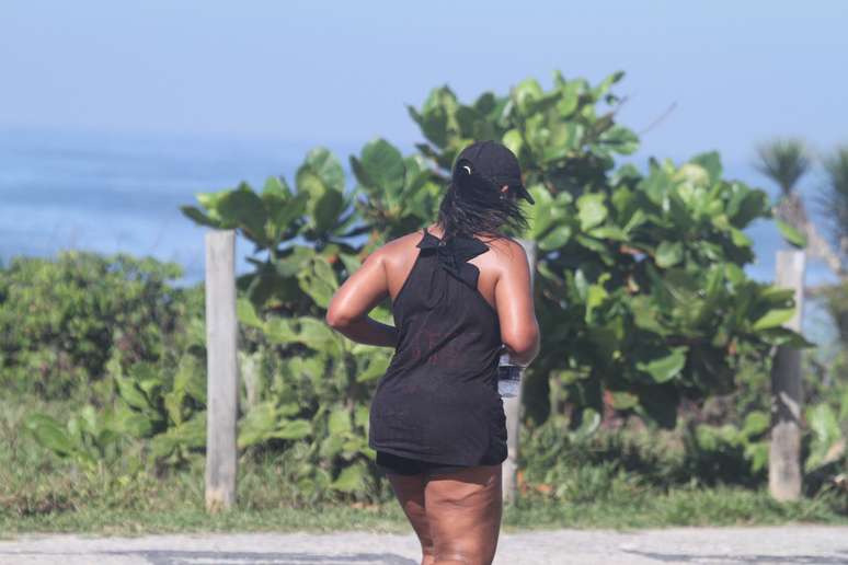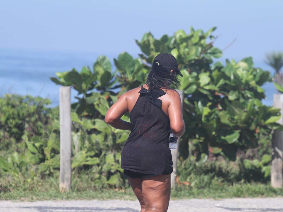A ex-BBB Priscila Pires foi fotografada na orla do Recreio dos Bandeirantes no Rio de Janeiro, nesta sexta-feira (28) enquanto fazia exercícios; a modelo acabou mostrando algumas celulites na sua perna enquanto corria