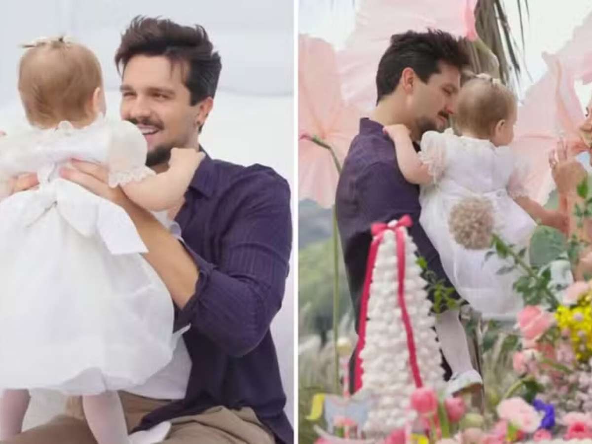 A herdeira de Luan e Jade roubou a cena ao usar um sofisticado traje branco para a ocasião. Já os convidados foram presenteados com arranjos de flores e lembranças personalizadas em tons de azul e rosa, que remetiam a brinquedos de carrossel.