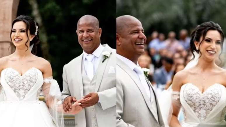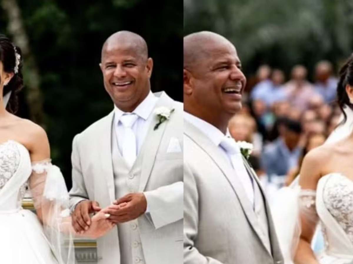 "No dia mais especial da minha vida, fui surpreendido de uma forma que me tirou o chão e me quebrou por inteiro. Esse quadro, com a imagem do meu saudoso pai e da minha mãe, foi mais do que um presente… Foi um lembrete do amor infinito e da honra que sempre terei por eles. Minha esposa Ariane e o meu irmão Marcinho, vocês não têm ideia do que isso significou para mim", disse ele.