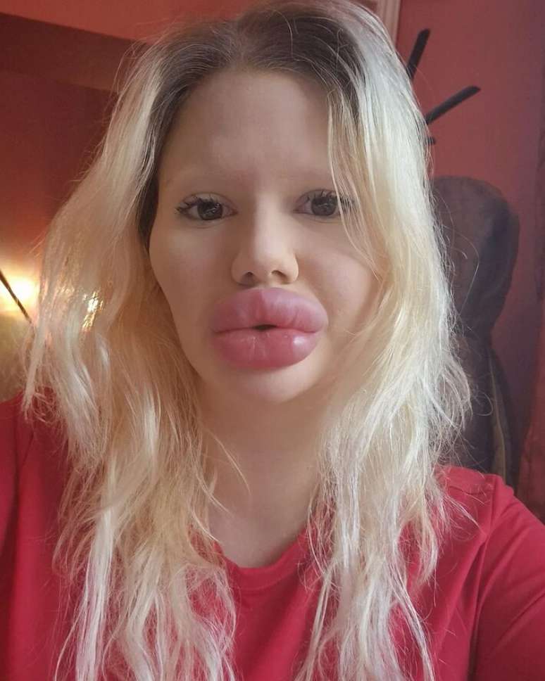 A influencer diz já ter gastado £ 20 mil (R$ 148,9 mil, conforme a cotação atual), em preenchimentos labiais. No ano passado, ela fez outras cirurgias plásticas nas bochechas e no nariz para evitar rugas causadas pelos lábios.
