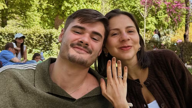 O momento aconteceu ao ar livre, em um parque. João se ajoelhou para fazer o pedido. Giovanna reagiu com surpresa e respondeu "sim".
